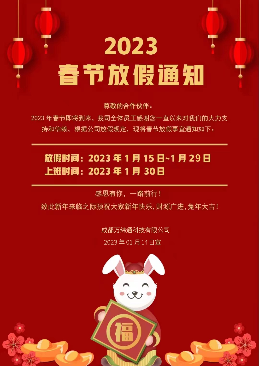 成都雨淅物聯(lián)科技2023年放假通知